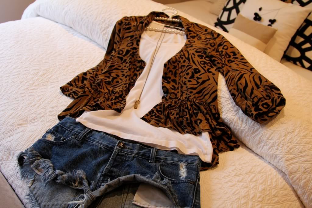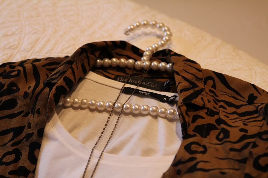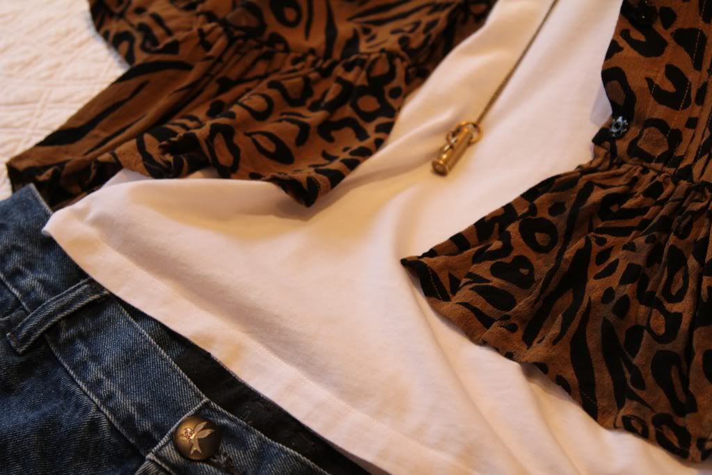 [Shakuachi leopard print open shirt Sportsgirl T Oneteaspoon bonitas Own designed bullet necklace Dotti booties]